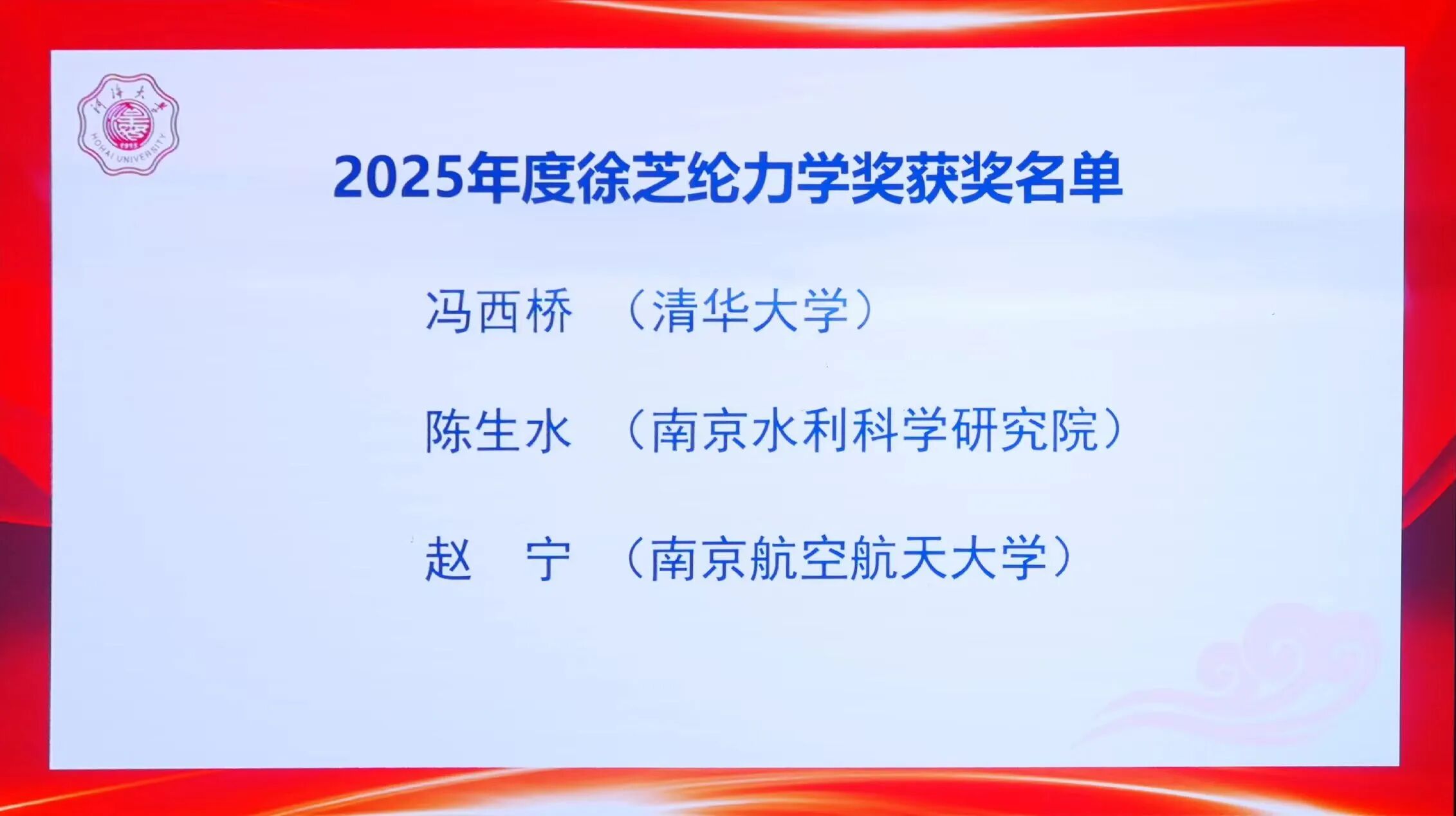 “徐芝纶力学奖”是由江苏省力学学会发起,于2005年在河海大学教育发展基金会“徐芝纶教育基金”中设立,旨在奖励在力学教学、科学研究、工程应用等方面成绩突出的力学界人士,每两年评选一次,在全国范围内具有很高的社会声誉。在历届获奖者中已有9人当选中国科学院或中国工程院院士,3人获国家教学名师奖。