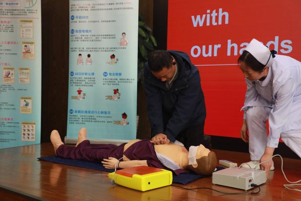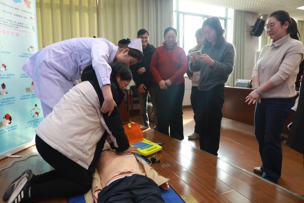 讲解过程中,医生重点强调了心跳骤停后的黄金抢救时效,结合真实临床案例,拆解了心肺复苏的操作要领——从判断意识、呼叫求助、检查呼吸,到胸外按压的深度、频率,人工呼吸的规范动作,每一个步骤都讲解得清晰易懂,同时纠正了日常急救中常见的误区,让参训人员对急救操作有了科学、准确的认知。针对气道异物梗阻这一常见意外,医生现场演示了成人、儿童及婴幼儿海姆立克急救法的不同操作规范,避免因操作不当造成二次伤害。